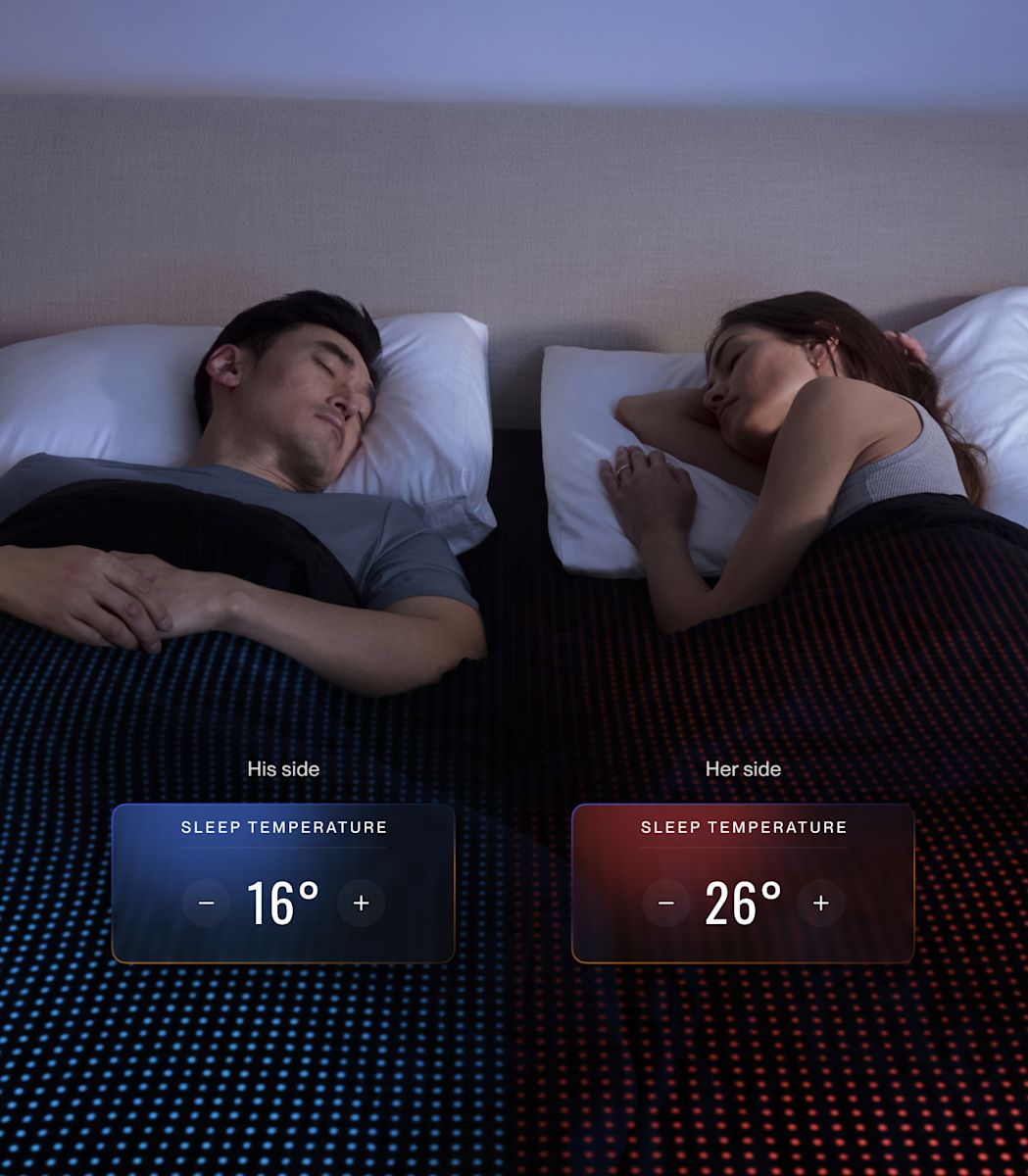 Confort térmico totalmente inmersivo, con enfriamiento y calefacción entre 12° to 43°C, que se adapta en tiempo real para mantenerte a ti y a tu pareja en sueño profundo por más tiempo.